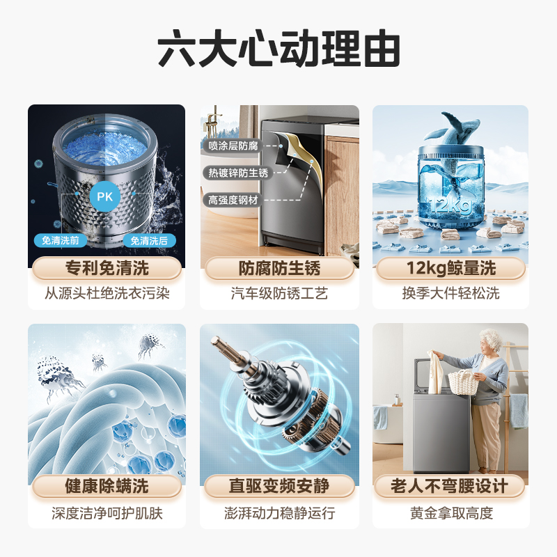 全民补贴美的12/10/8kg直驱变频全自动家用大容量除螨波轮洗衣机