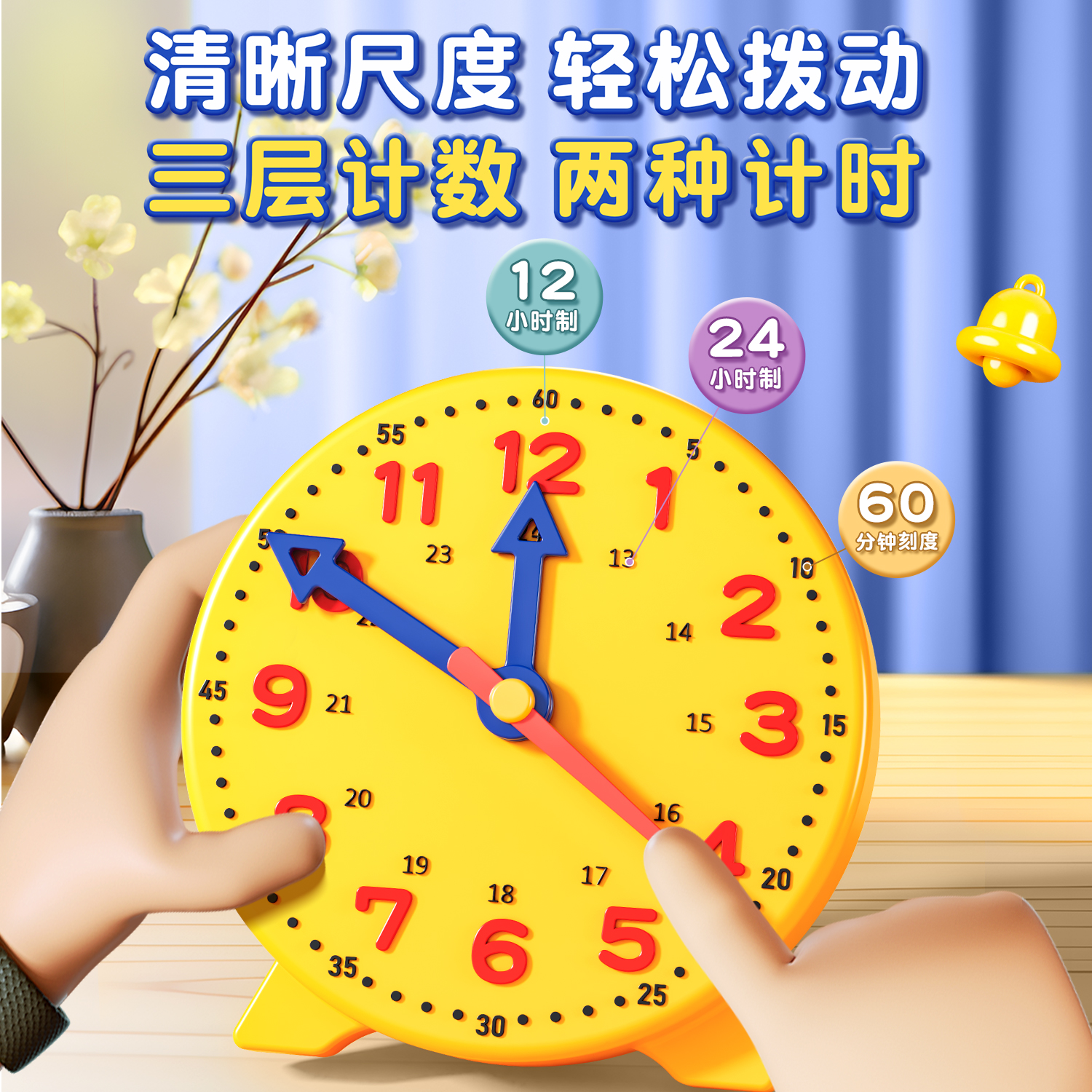 钟表模型小学教具一二年级小学生儿童三针联动认识钟表和时间学习专用闹钟学具模型二针联动表盘老师教学推荐