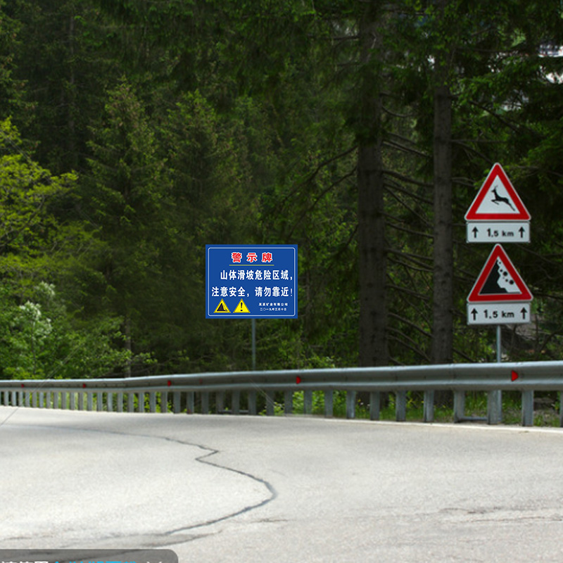 山体滑坡危险区域警示牌 地质灾害影响注意安全请勿靠近安全警示牌提示牌铝板反光膜定做
