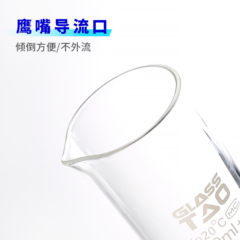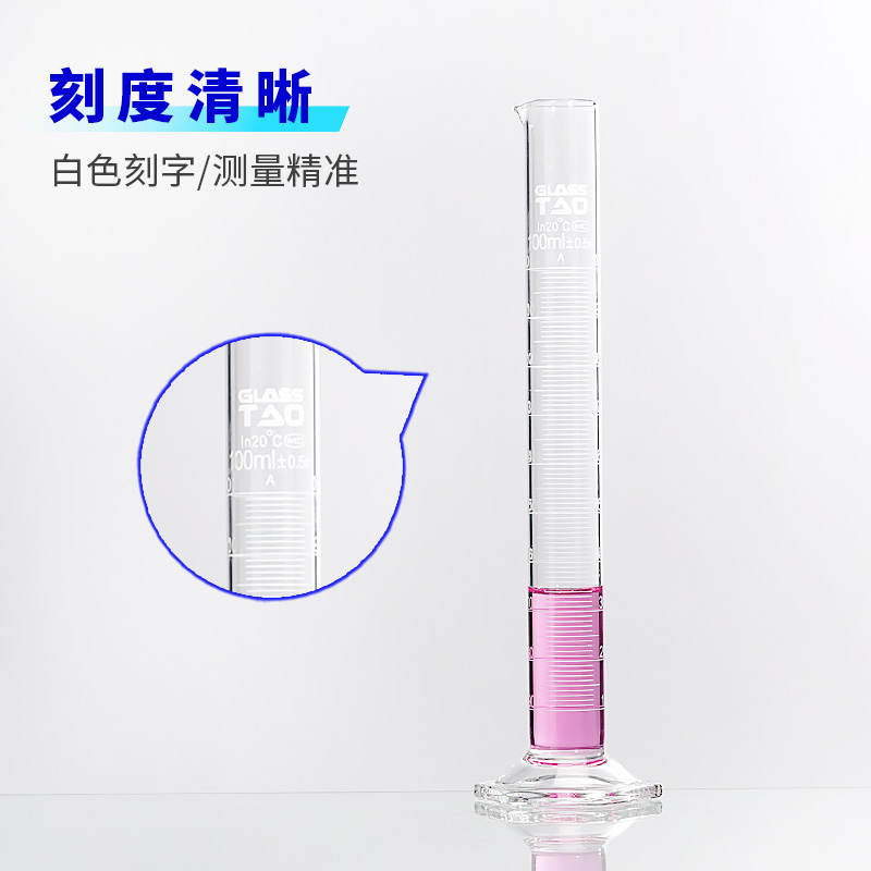 GLASSTAO陶六角底量筒 A级耐酸耐碱带刻度高硼硅玻璃刻度清晰鹰嘴导流口 10/50/200500/2000ml