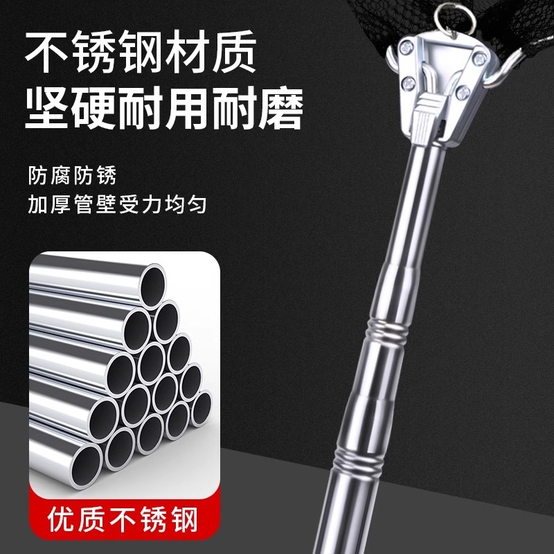 折叠抄网不锈钢一体实心抄网便携三角抄网抄网头抄网杆捞鱼抄网兜