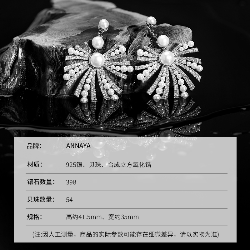 Annaya韩雪同款星云耳环小众高级感纯银百搭耳钉情人节礼物女耳圈