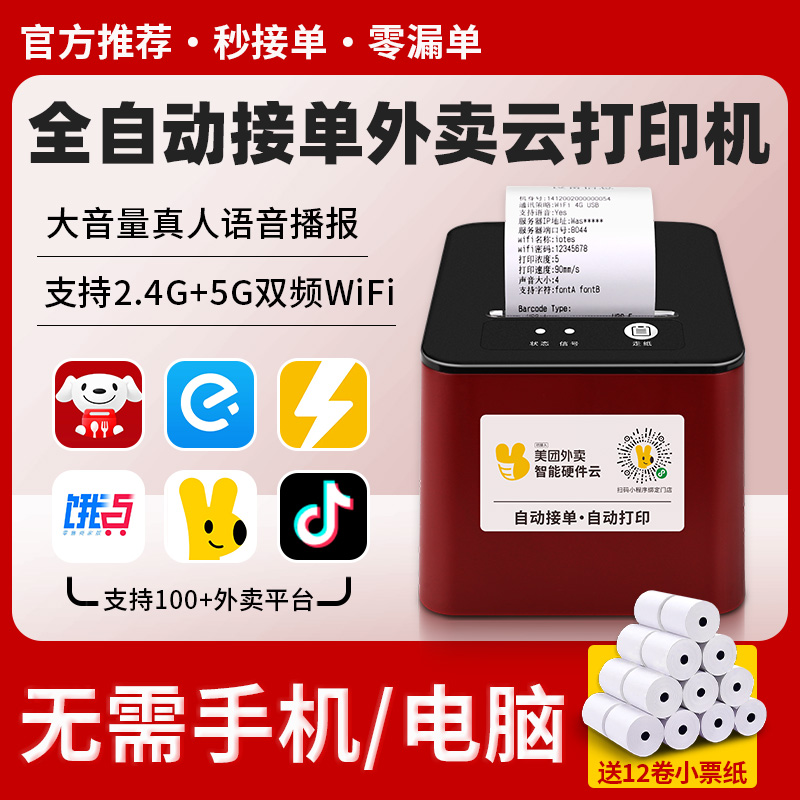 外卖打印机美团饿了么抖音京东自动接单小票机wifi自动切纸蓝牙4G餐饮商家收银热敏票据云打印出单神器打单机