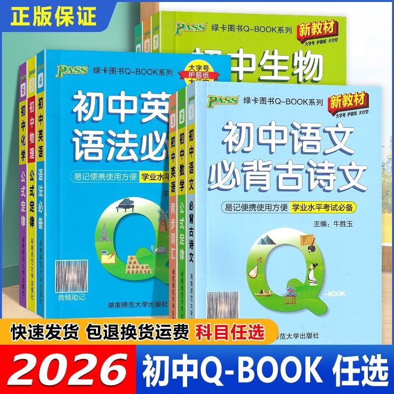 2026初中绿卡QBOOK图书语文数学英语物化生新教材通用版词汇公式古诗文物理同步历史汇总地理定律知识便携默写基础速查化学语法