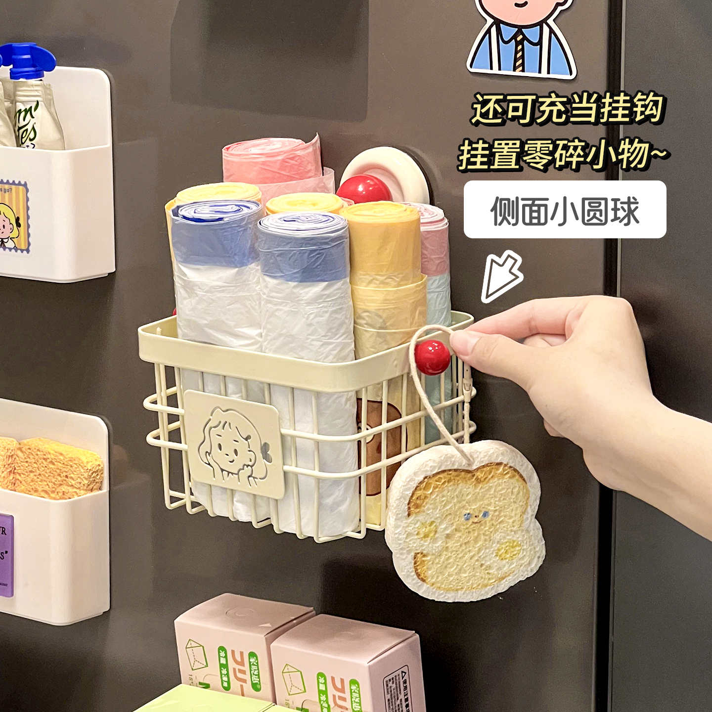 冰箱贴磁贴置物架侧面可爱磁吸收纳盒厨房壁挂免打孔多功能磁力贴