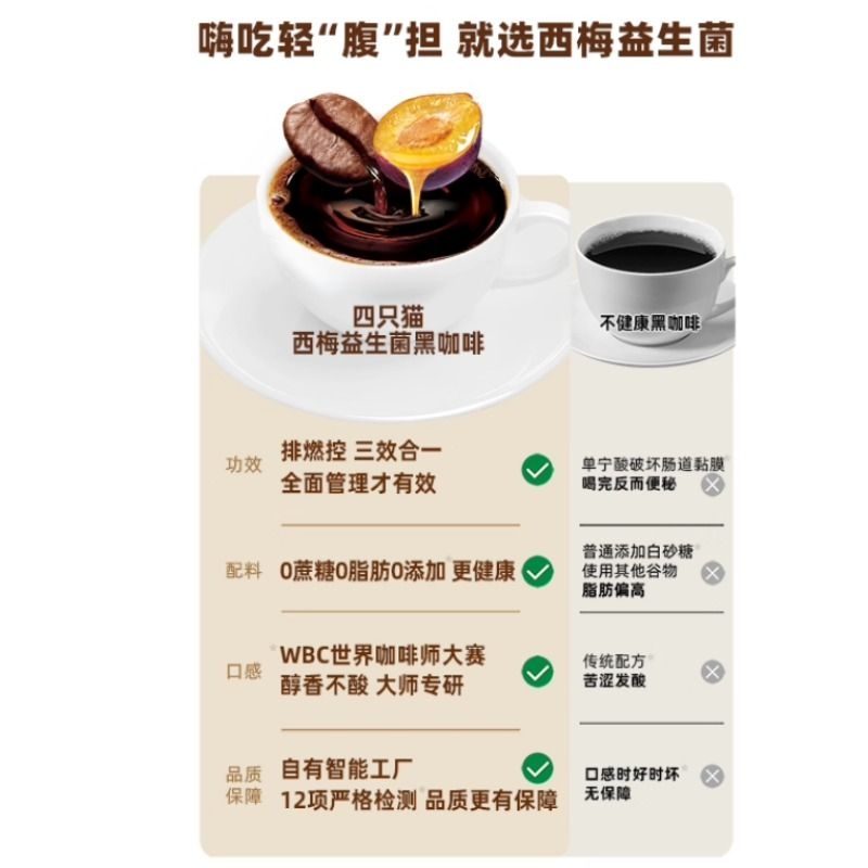 四只猫西梅益生菌美式纯黑咖啡0脂肪0蔗糖云南咖啡速溶黑咖啡正品