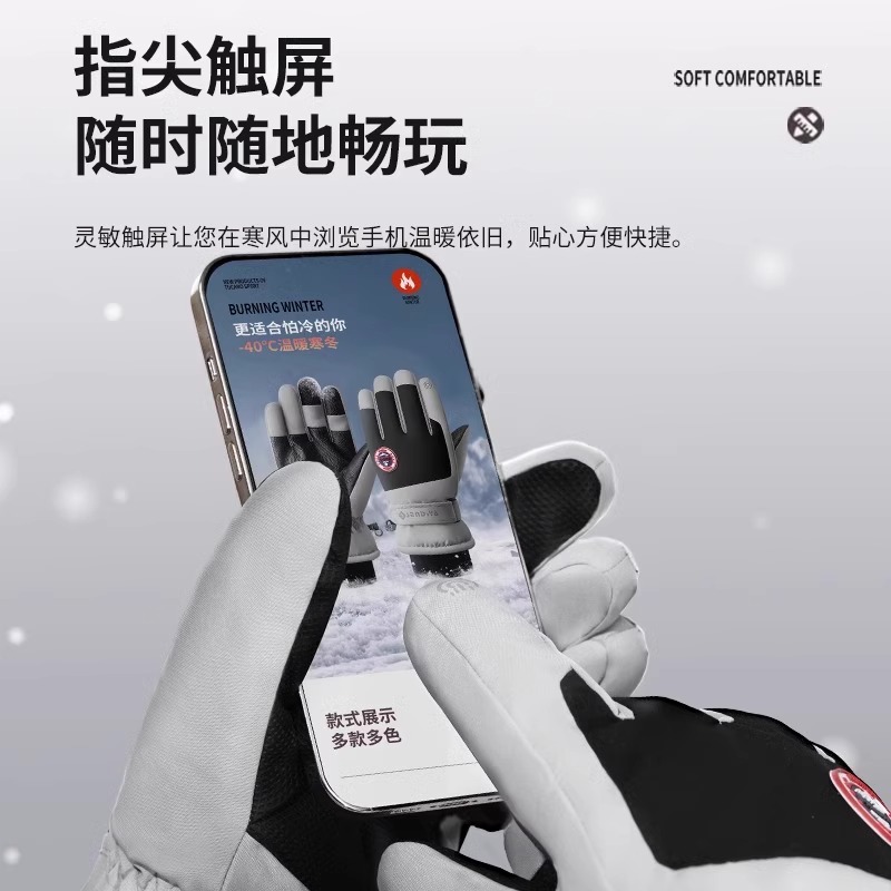 俞兆林保暖手套男女户外冬天骑行防寒风加绒厚棉触屏防水滑雪手套
