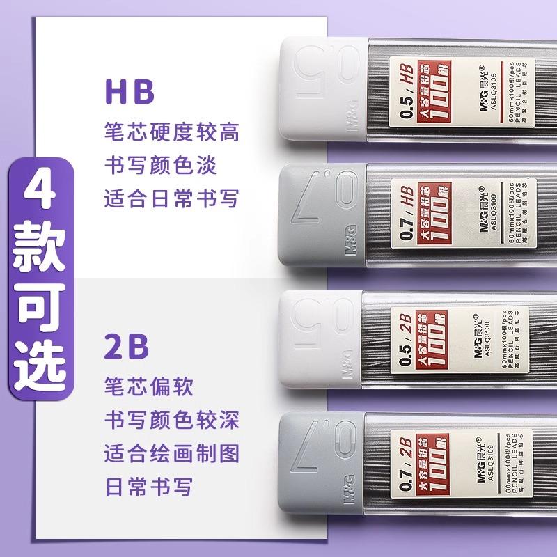 晨光自动铅笔圆规笔芯活动铅笔替换芯铅芯大容量hb2b0.7/0.5mm