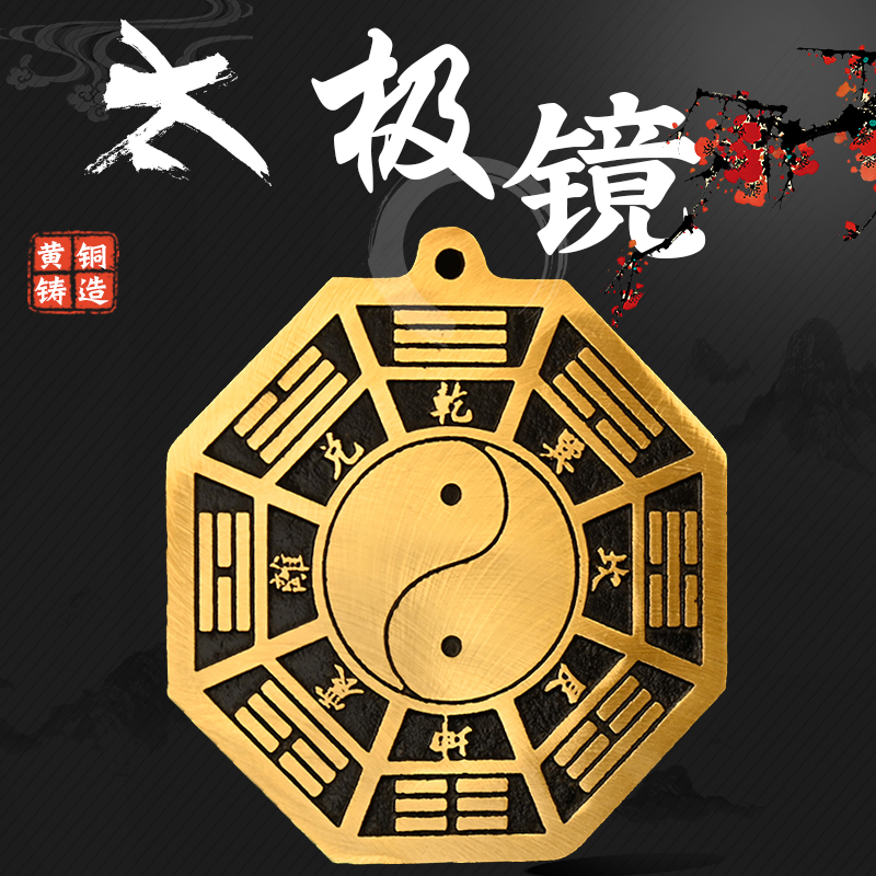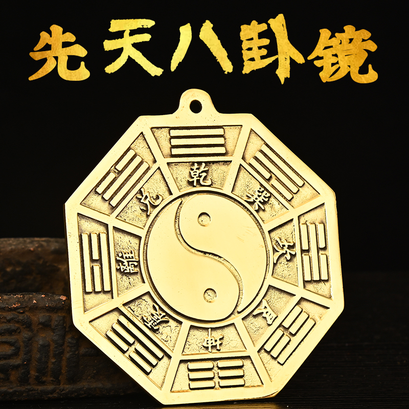 黄铜后天八卦镜先天太极八卦镜平面镜太极图家用大门口阴阳镜摆件