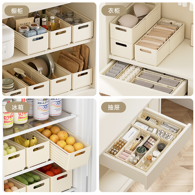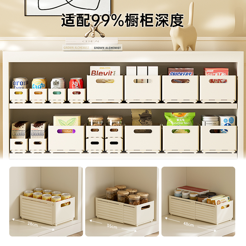 橱柜收纳盒可伸缩厨房收纳筐桌面零食整理盒抽屉式储物盒长方形