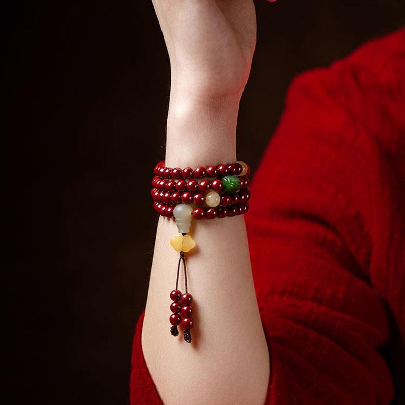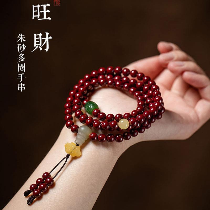 高含量朱砂手串紫金砂多圈和田玉手链女佛珠