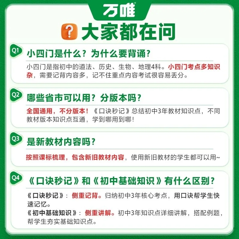 2026万唯初中口诀秒记小四门政治历史地理生物必背知识点记背书必背知识点一本通初一二三七八九年级上下基础考点速记手册大全