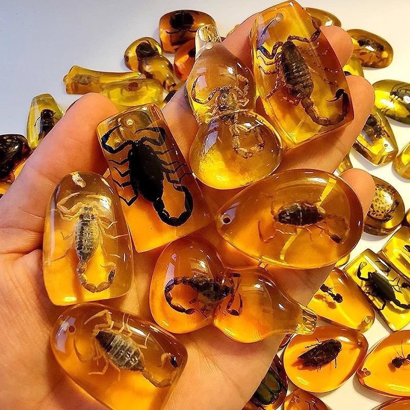 琥珀昆虫DIY手工艺品学生琥珀色创意美术手工画画黄色热熔胶颗粒
