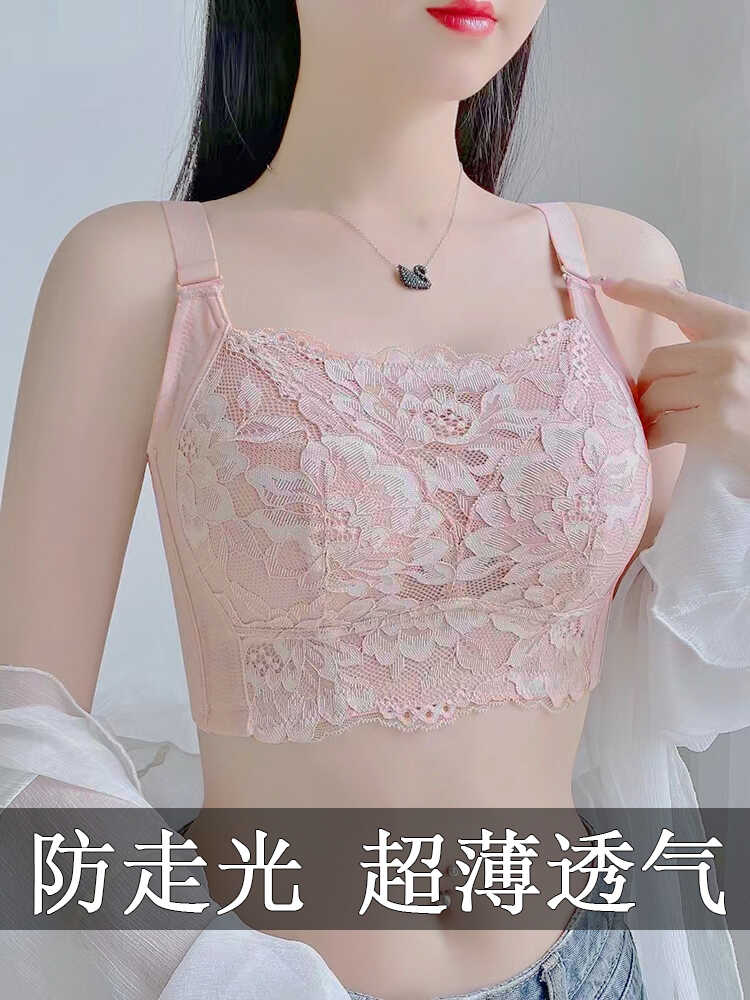 内衣女抹胸防走光大胸显小薄款聚拢防下垂收副乳大码全罩杯文胸夏