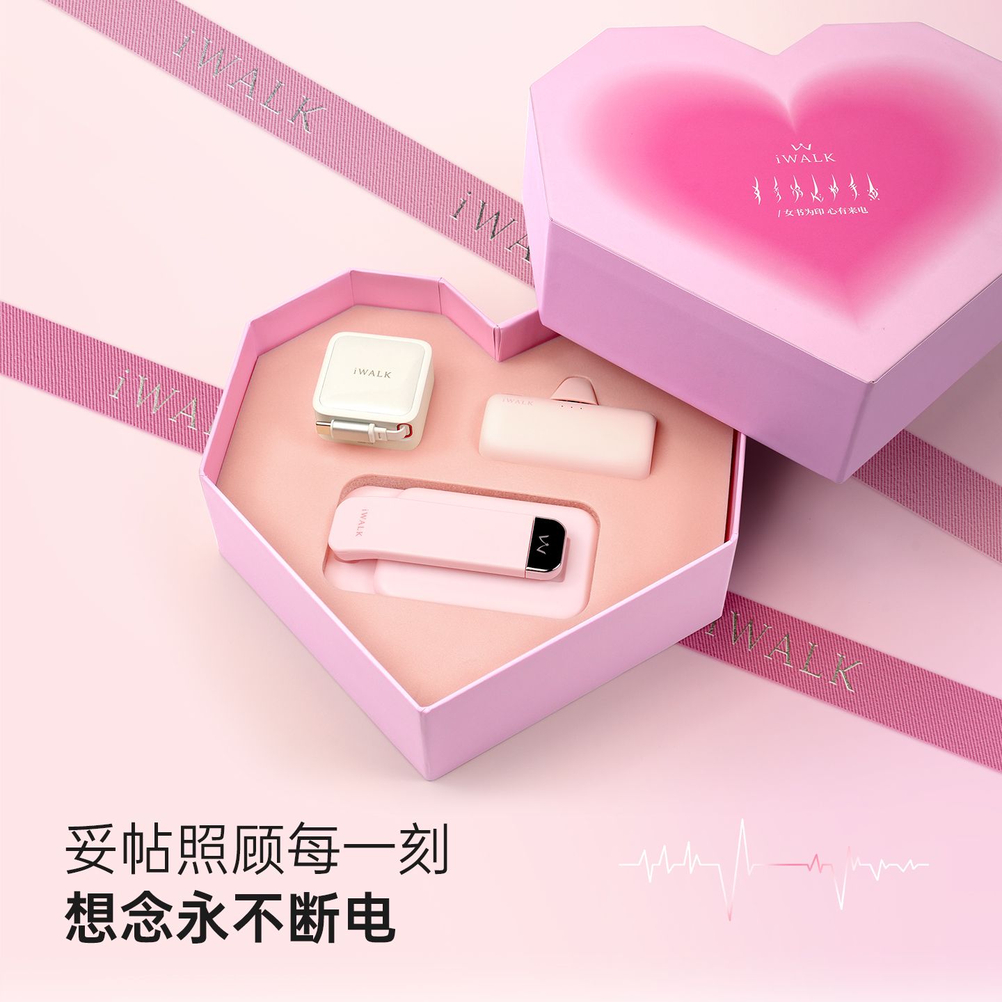 【限定充电套装】iWALK爱沃可心有来电七夕能量礼盒双切换头口袋胶囊充电宝支架充电插头组合送女友闺蜜情侣
