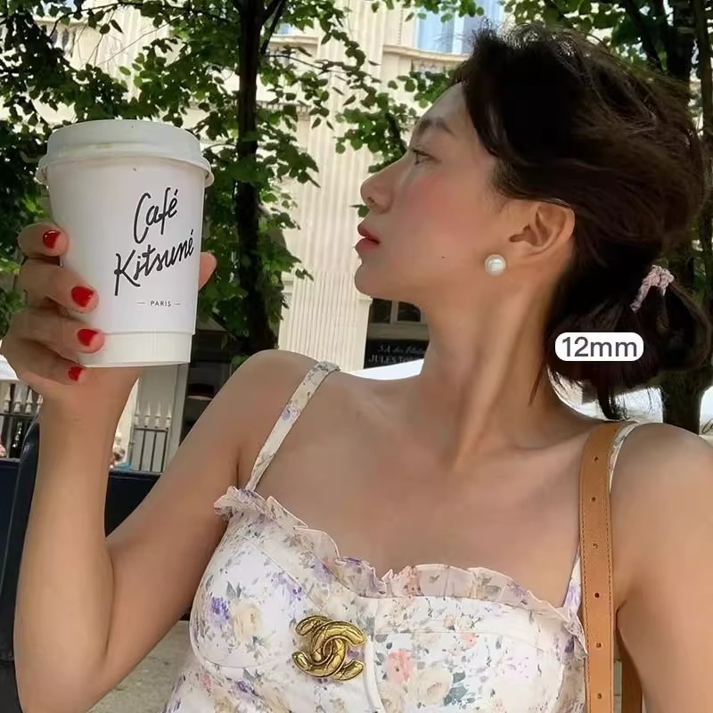 镀银针珍珠耳饰耳钉珍珠超大女施家fever同款2024轻奢高级感轻奢