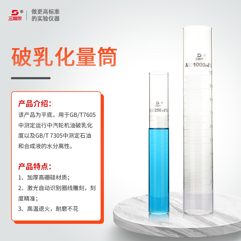 三爱思抗泡沫破乳化玻璃量筒平底无座量筒石油密度润滑油泡沫量筒
