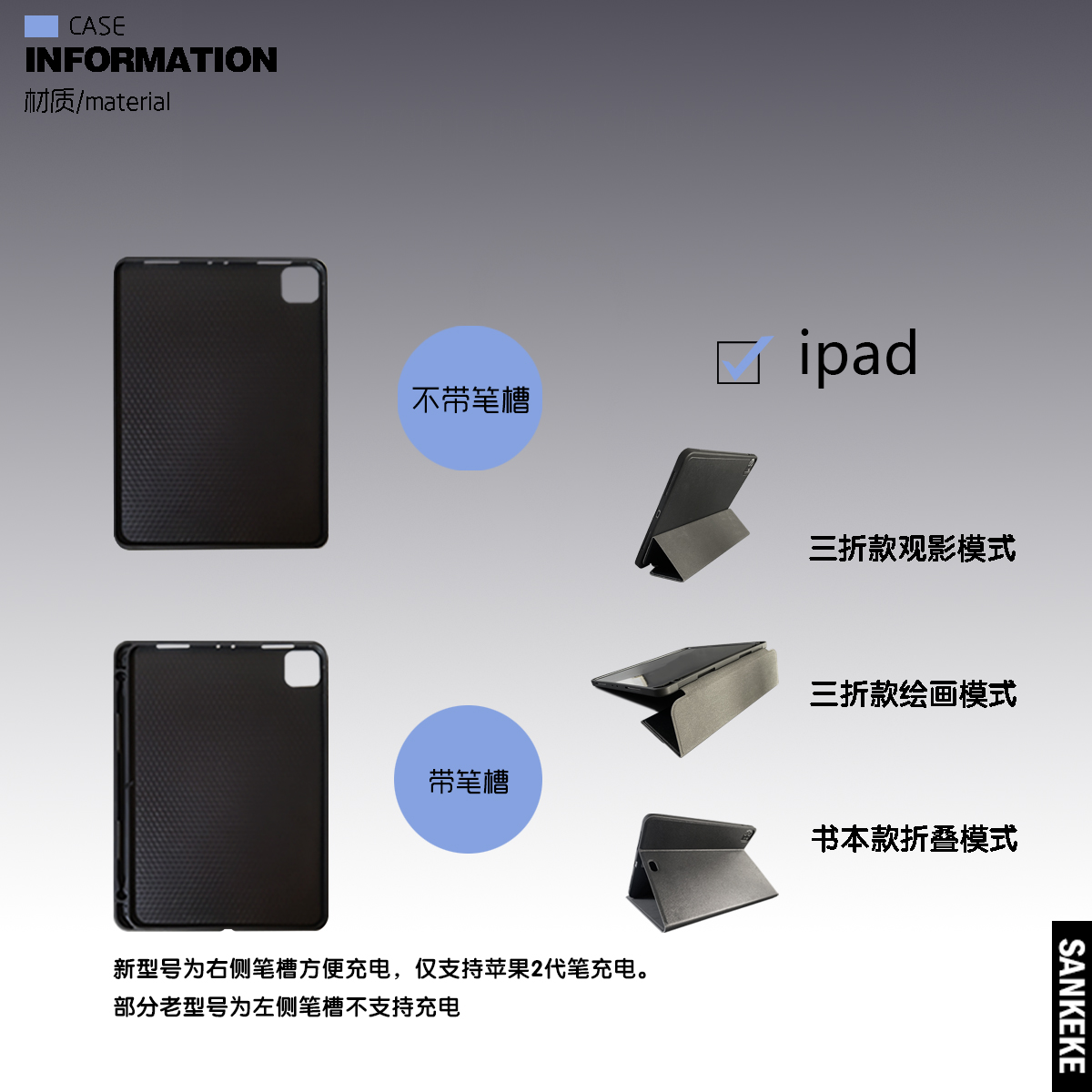 三壳壳原创小众暗黑血色风格酷炫IPAD2023防摔平板保护套带笔槽360旋转亚克力/三折/书本款适用于苹果air5/4/
