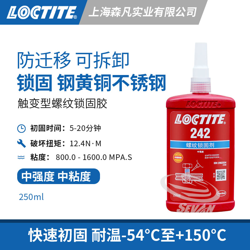 乐泰242 螺纹锁固胶初固快 尺寸M36金属螺纹防止涂敷后发生迁移