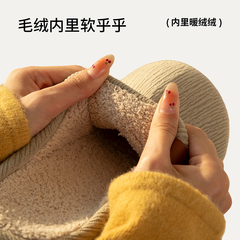 朴西暮棕男士棉拖鞋秋冬季室内居家用厚底防滑保暖静音地板拖鞋女