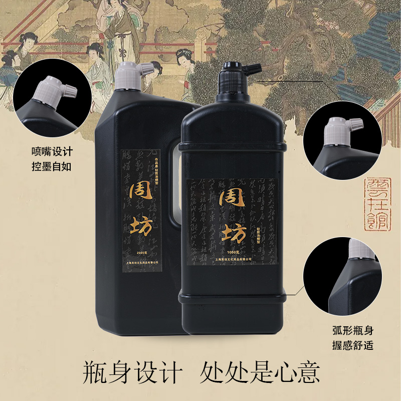 周坊墨汁书画轻胶油烟墨大容量墨汁初学者毛笔书法专用墨水毛笔墨水水墨墨迹国画书画作品大桶装练字作品级