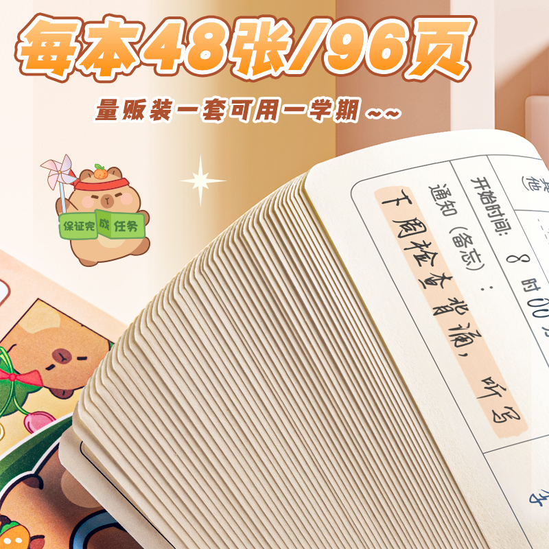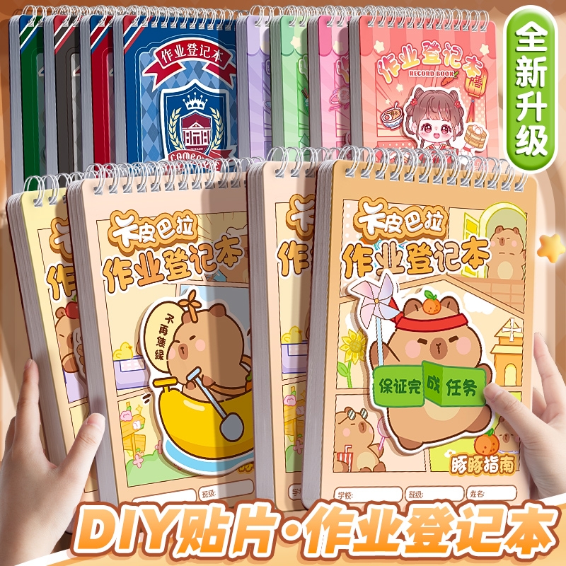卡皮巴拉作业登记本DIY贴片小学生卡通家庭记作业小本子记录本家校联系本一二年级回家抄笔记加厚记事本错题