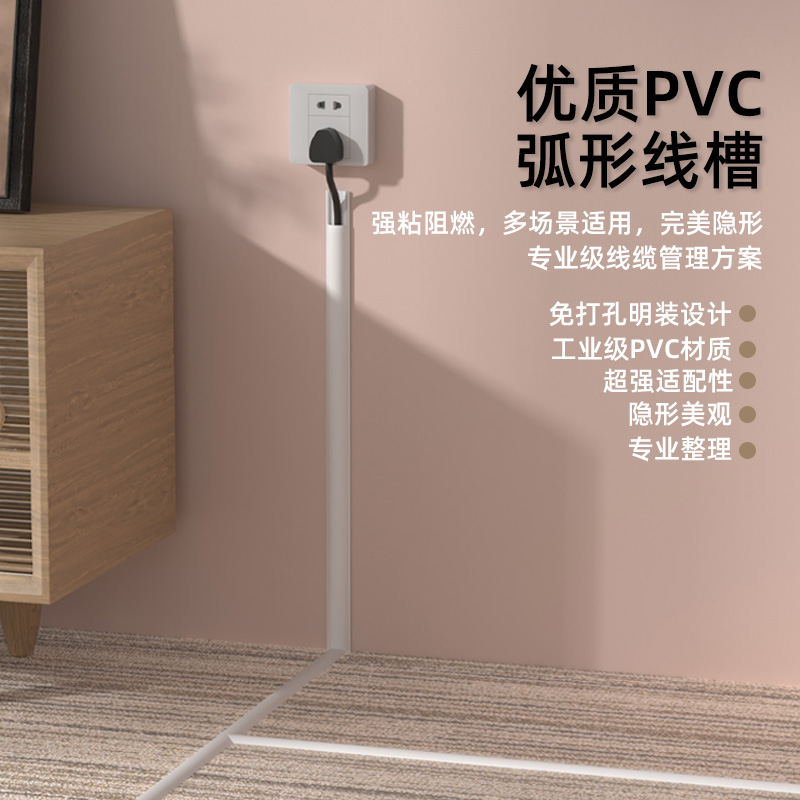 PVC弧形线槽遮挡电线槽地面自粘明装家用地线槽防踩装饰走线槽