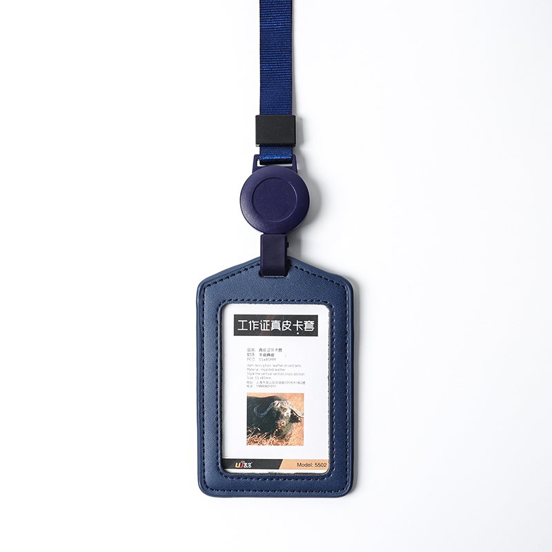 文久真皮伸缩扣工牌卡套证件套工作证带挂绳双面透明工作牌胸牌工作吊牌胸卡挂牌厂牌挂脖工号牌保护套公交卡