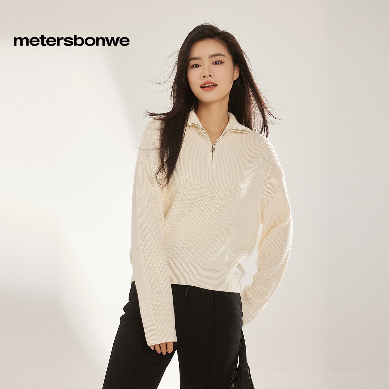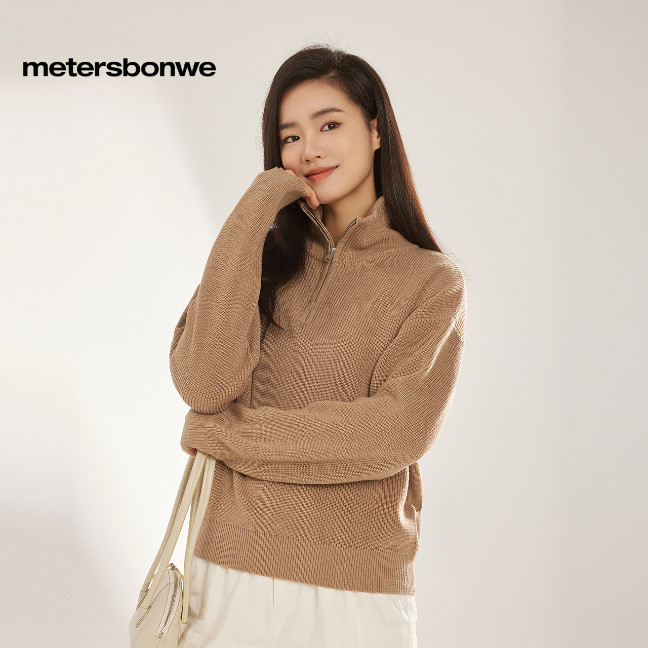 美特斯邦威秋季新款毛衫女拉链半高领针织毛衣女廓形上衣