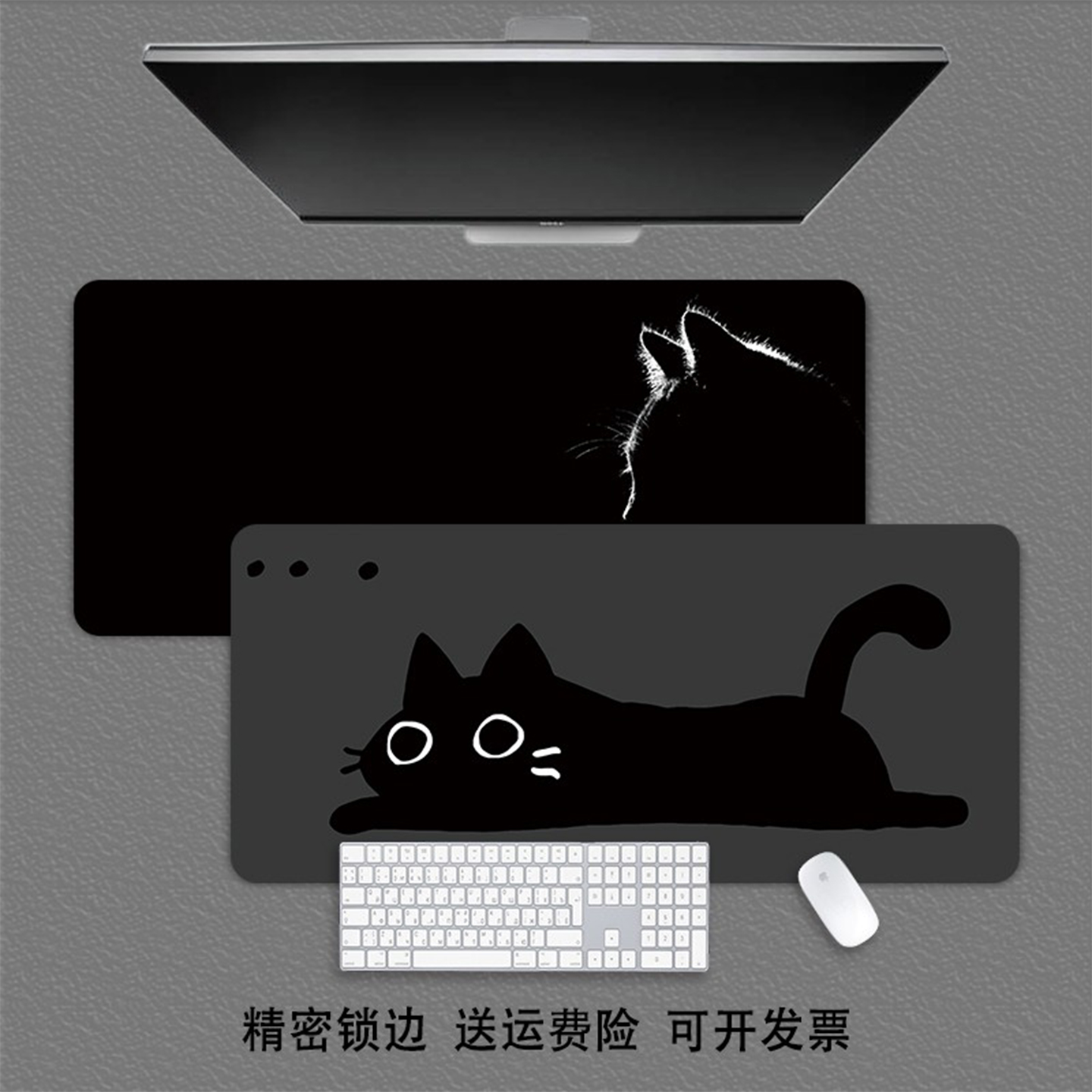猫咪鼠标垫超大可爱卡通大号黑色键盘电竞女生键盘垫桌面男生桌垫