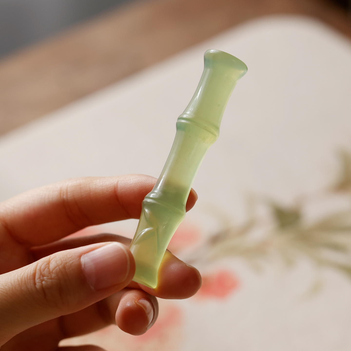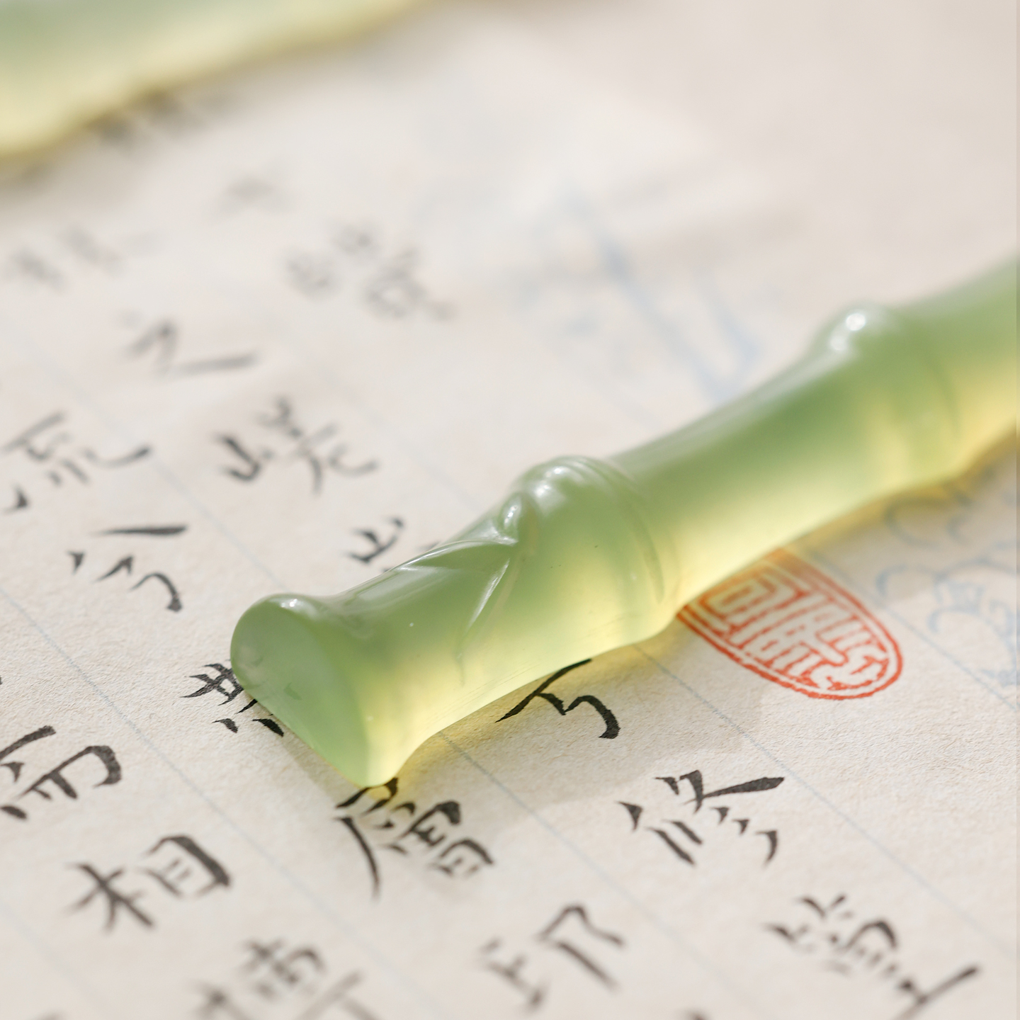 岫玉竹节笔搁 多功能书法玉石笔架 美观初学者毛笔摆件文房书法
