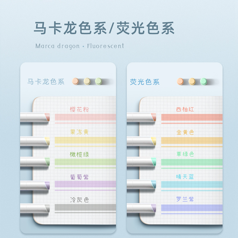 点石三角杆荧光笔12色记号笔简约学生划重点标记笔套装柔色手账笔