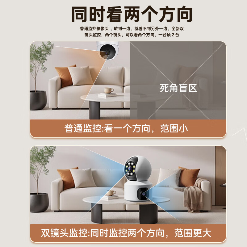 鸣胜家用监控摄像头双摄双画面带夜视全景360度无死角可对讲室内