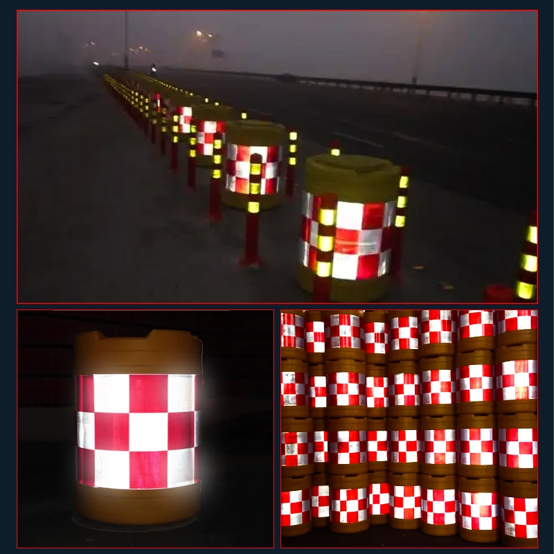 防撞桶反光贴夜间交通路障贴安全警示标识红白反光带道路隔离高亮