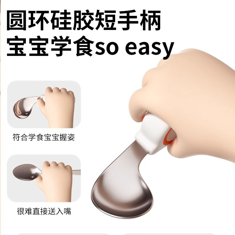 宝宝勺子学吃饭辅食勺新生婴儿自主进食不锈钢训练叉勺儿童餐具