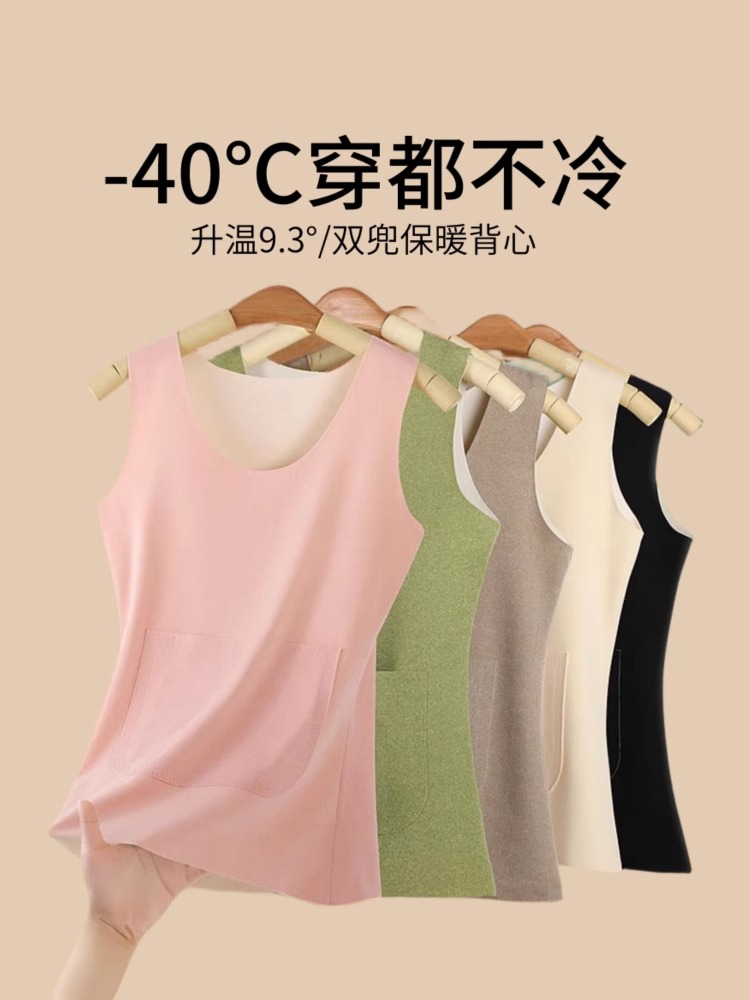双兜德绒背心女保暖上衣口袋秋冬无痕内搭护腰打底秋衣女贴身发热