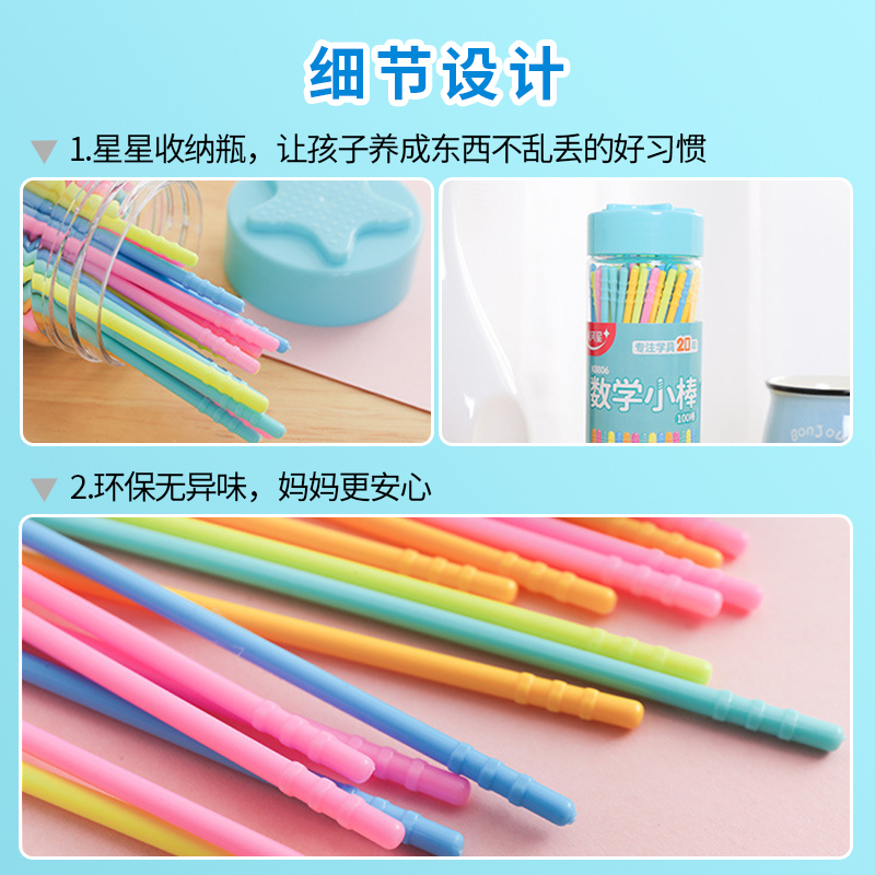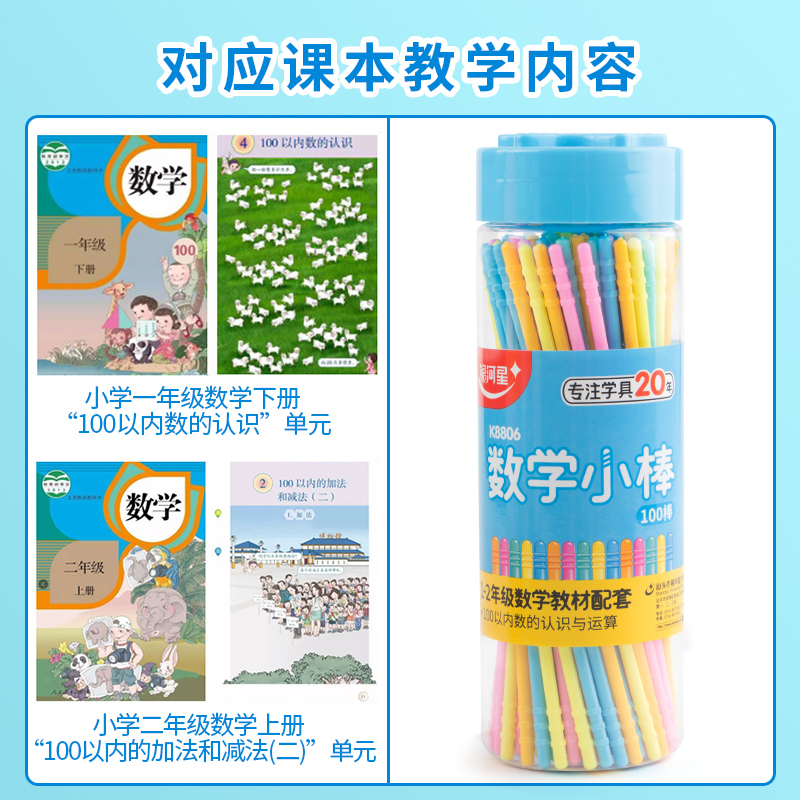 银河星筒装数学小棒100根小学生数数棒一二年级上计数棒加粗防滑幼儿园小棒桶装加减法数数棒算数教具神器