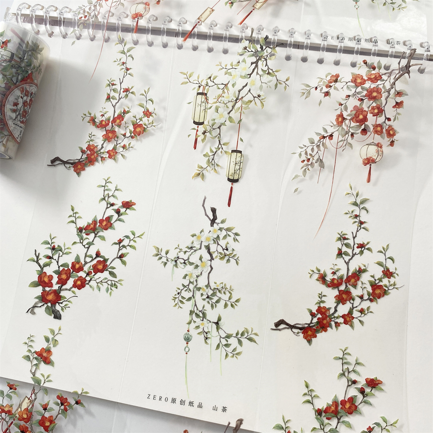 手帐分装胶带173山茶ZERO灯笼花PET百搭树枝古风素材账流麻贴纸咕