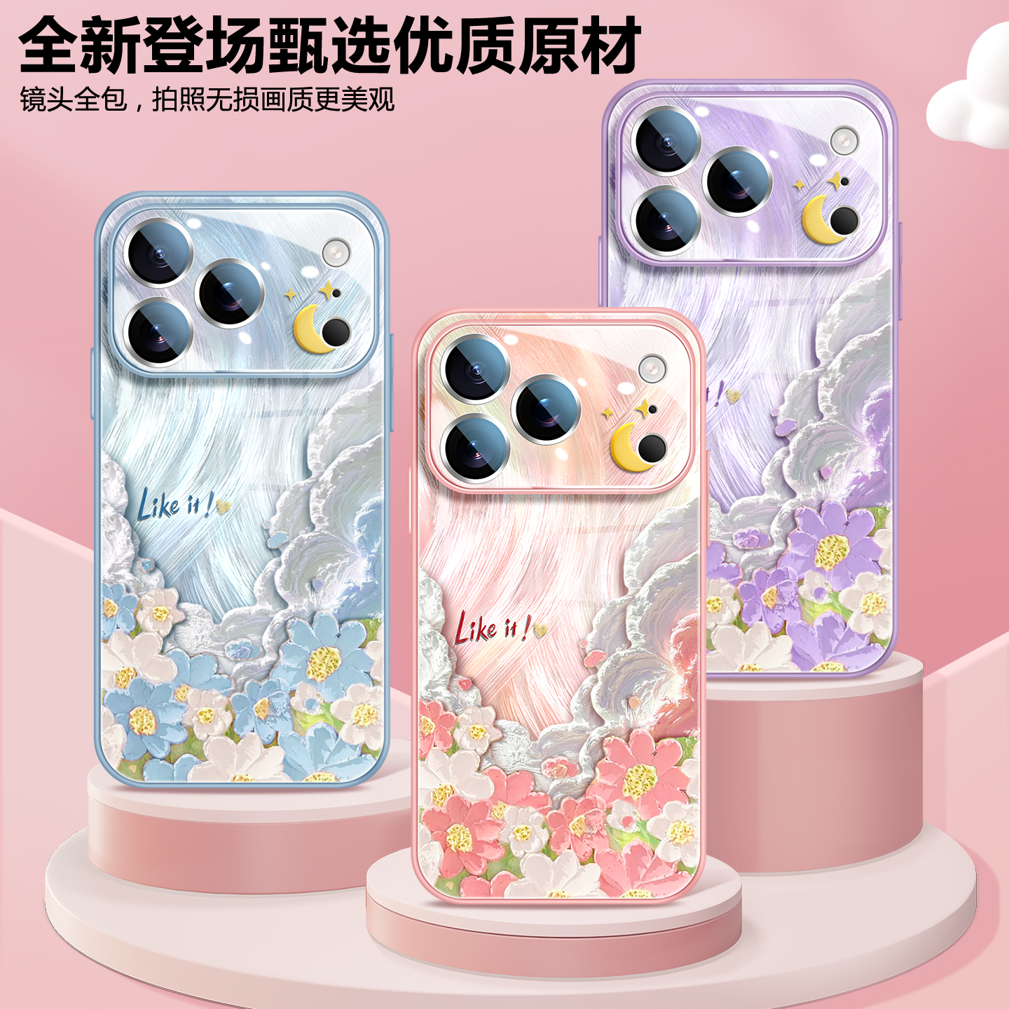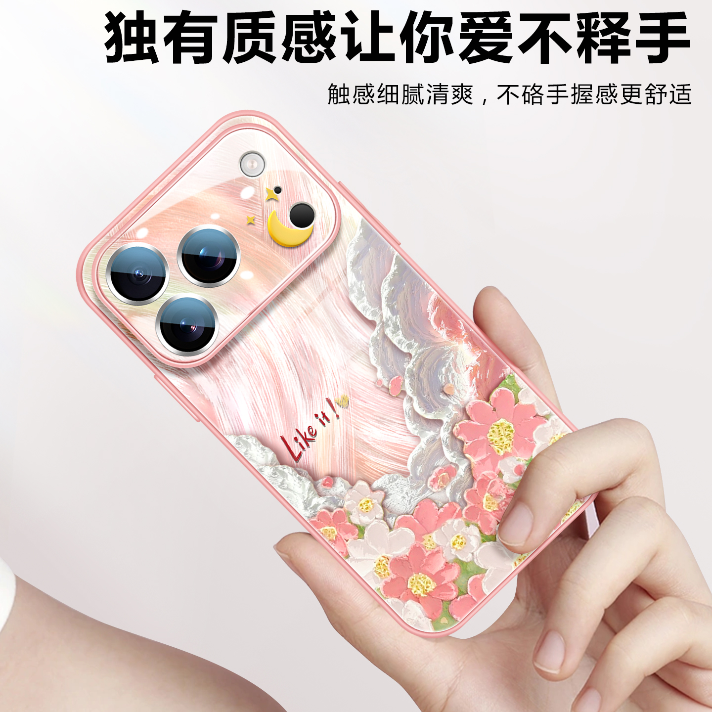 适用苹果17promax手机壳iphone15pro油画花朵14pm的新款16秒变17带镜头膜13全包防摔12外壳11高级感保护套air