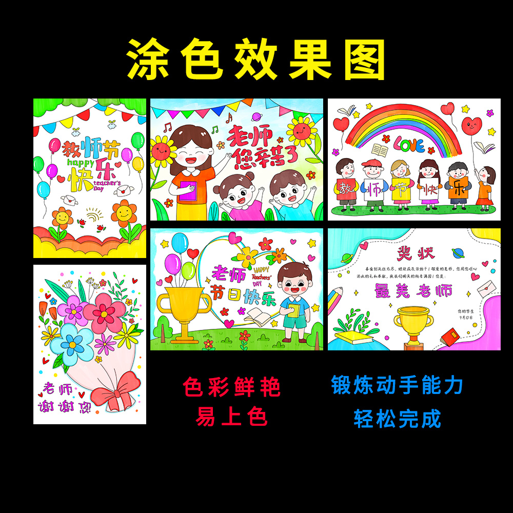 教师节儿童画模板老师辛苦了学生感恩老师diy半成品涂色画男孩版