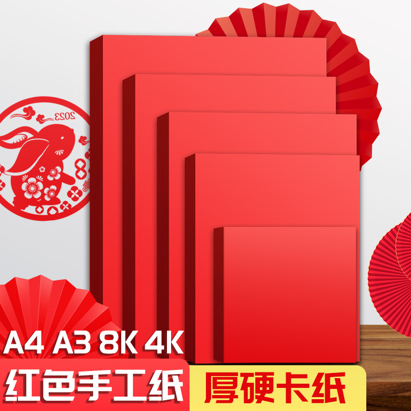 a4厚硬红色卡纸大张4k幼儿园儿童手工折纸diy窗花剪纸中国红卡纸