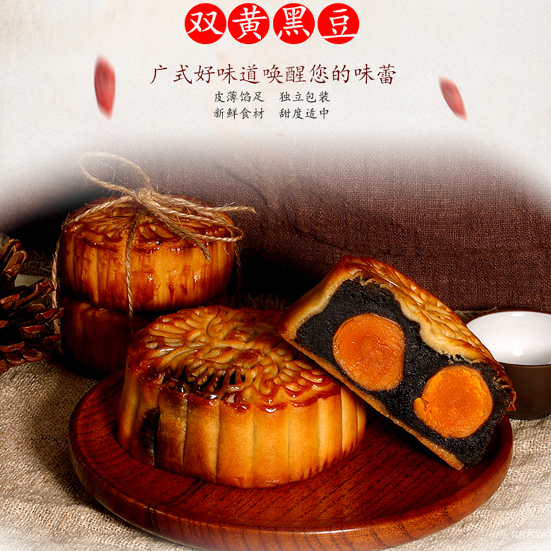广州增皇胜记酒家乌纯黑豆沙馅月饼广东老式特产散装传统糕点广式