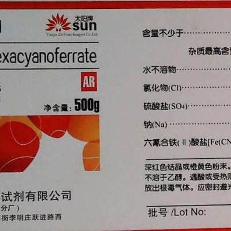 国药铁氰化钾六氰合铁酸钾赤血盐分析纯沪试500g化学纯CP铁氰化甲