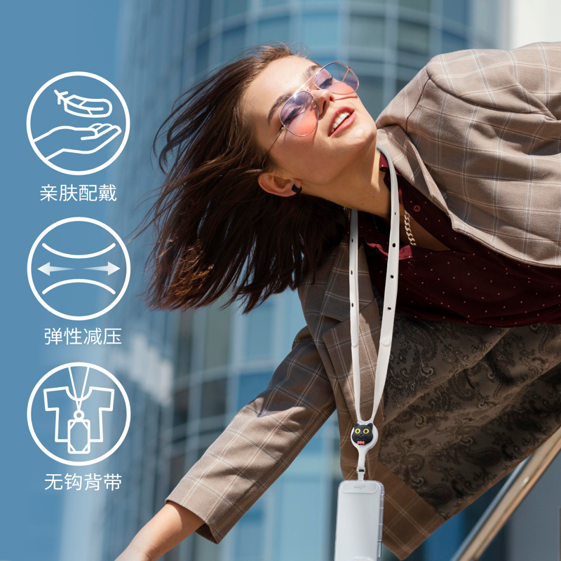 Bone手机挂绳斜挎可背挂脖宽绳手机夹片适用于iPhone全系列便携手机挂链硅胶可爱创意防丢绳可调节长短快拆装