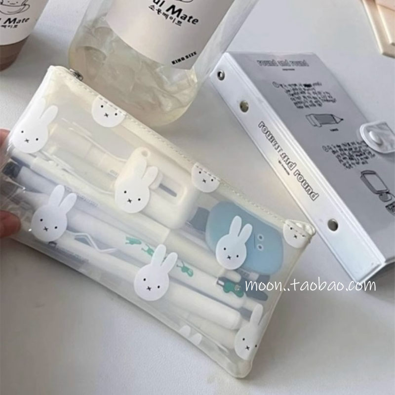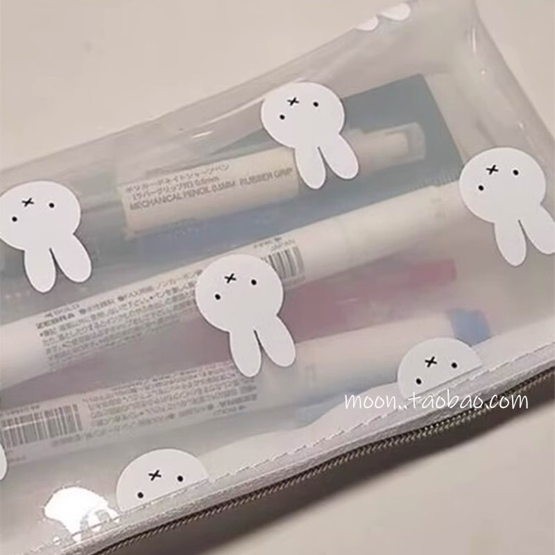 日系ins卡通可爱兔子简约大容量透明PVC防水学生笔袋文透明笔袋