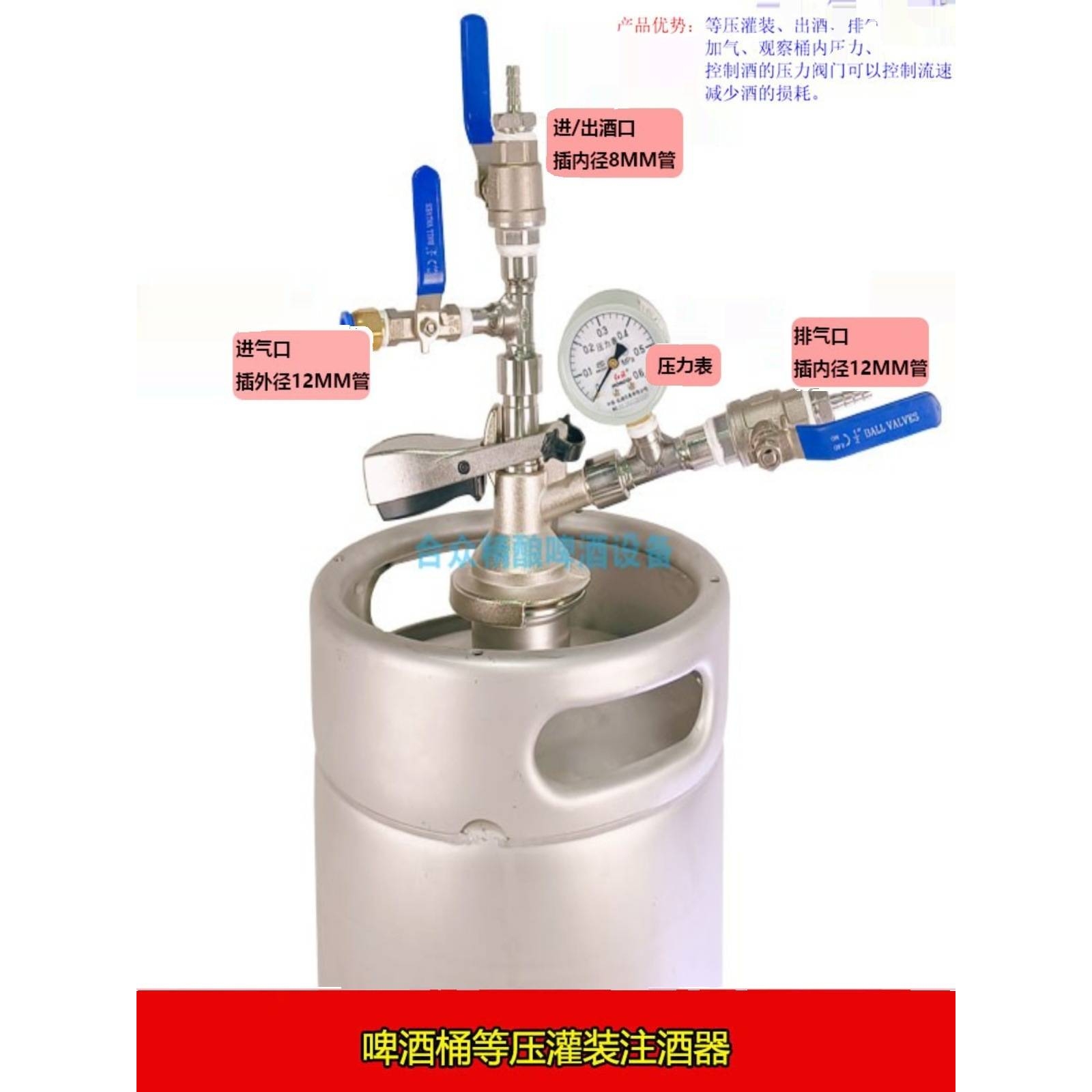 原浆啤桶消沫板式注酒打酒器G型A型等压灌装器扎啤桶加气测压