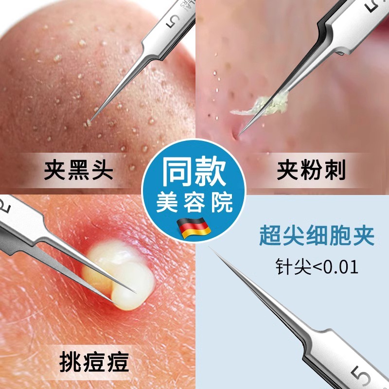 高档高精密细胞夹黑头超细粉刺夹镊子去黑头工具美容院祛痘粉刺针