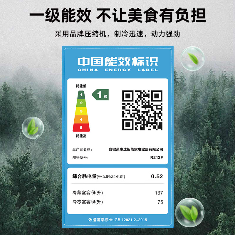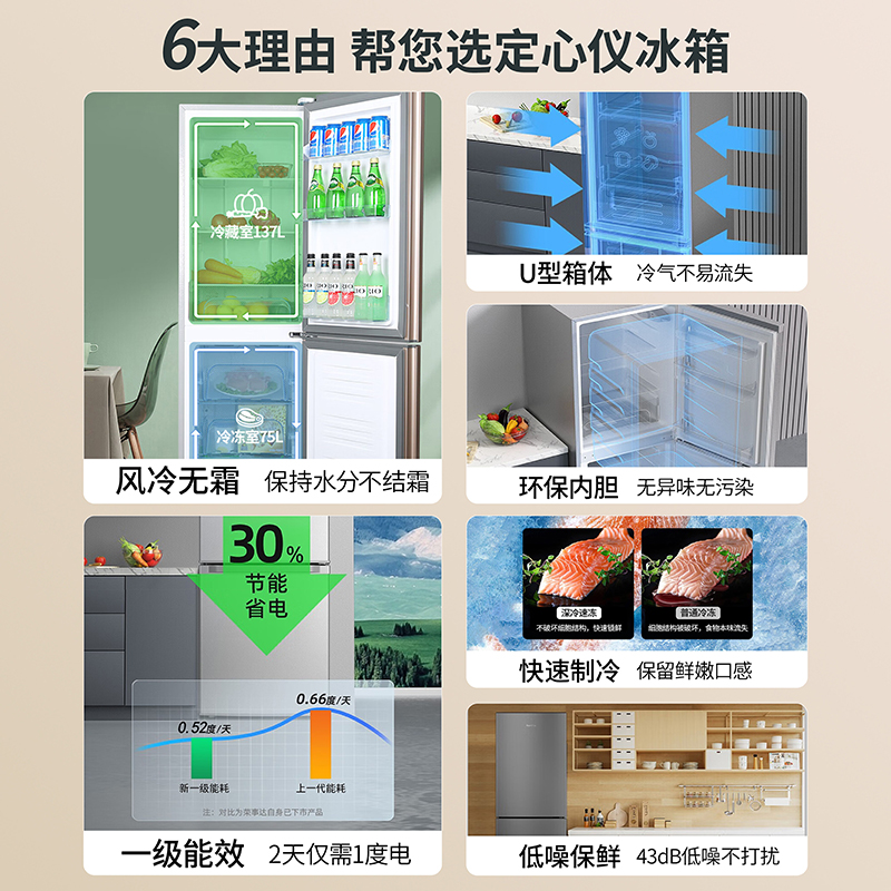 荣事达两门三开门冰箱一级能效风冷无霜中小型家用出租房省电低噪