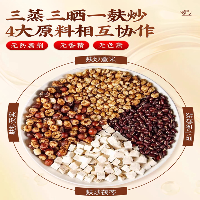 乐钦炒熟赤小豆薏仁薏米茯苓芡实祛湿气茶红豆水健脾养生中药材yy
