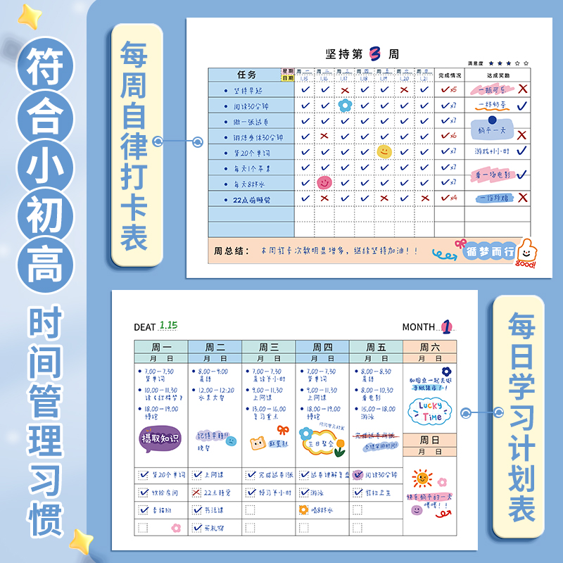 学习计划表自律打卡台历本儿童成长奖励孩子积分卡2025每日时间管理小学生作息时间记录奖罚寒暑假好习惯养成